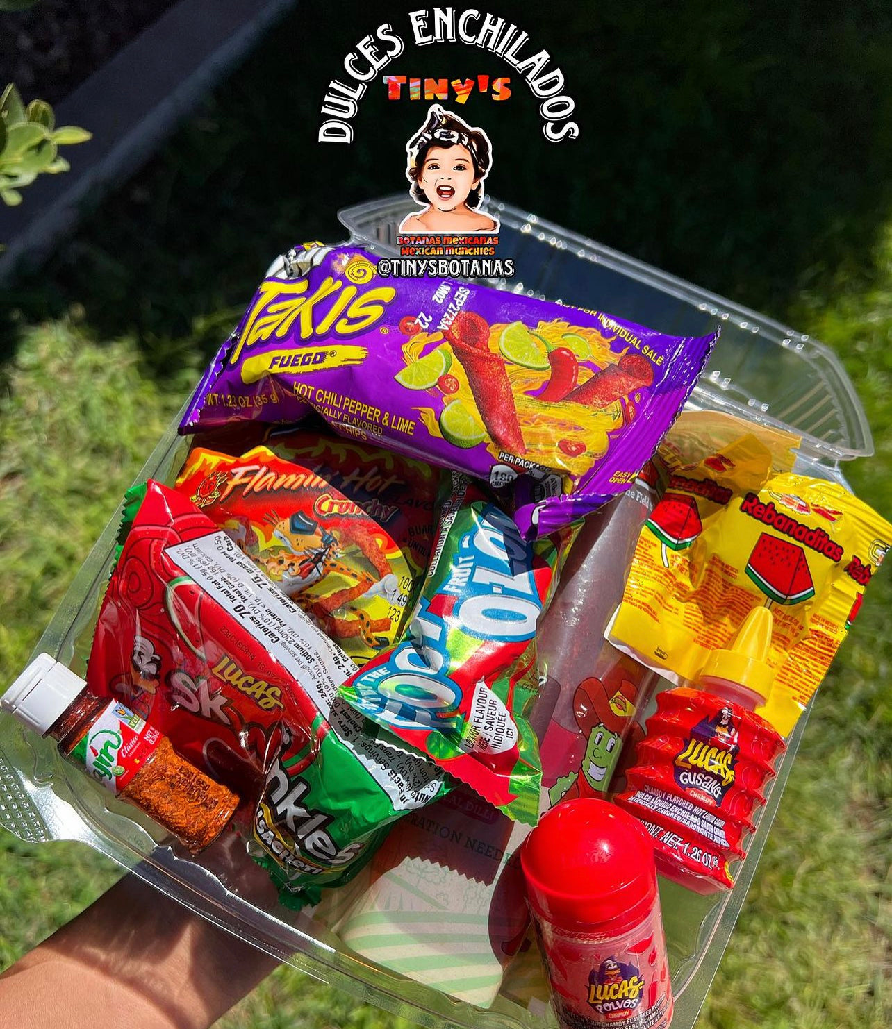 - 1 Chamoy Pickle Kit, Takis, Hot Cheetos, Fruit Roll Up, Lucas Chamoy Powder, Lucas Chamoy, Tajin, Lucas Swinkles, 1 Mystery Candy